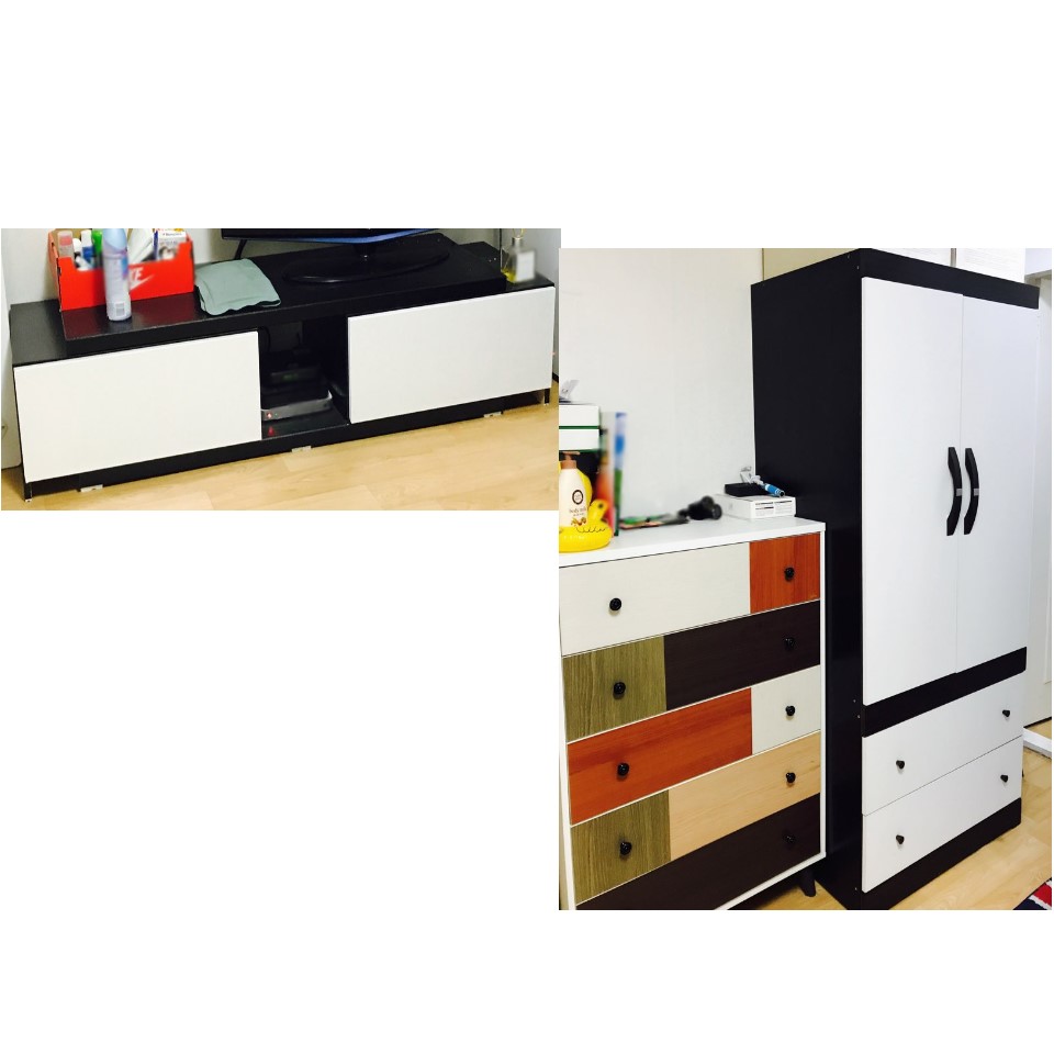 슈퍼싱글침대+5단서랍장+장롱+TV다이